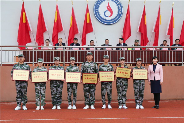 学生工作部部长、团委书记姚雯欣宣读了《Beat365唯一官方网站2019年学生军训评比表彰决定》。与会领导为获得军事训练优秀连队、优秀指导员、优秀教官、优秀内务连队、“我为祖国把歌唱”拉歌比赛优秀连队、优秀标兵称号的集体和个人颁发了荣誉证书及牌匾。