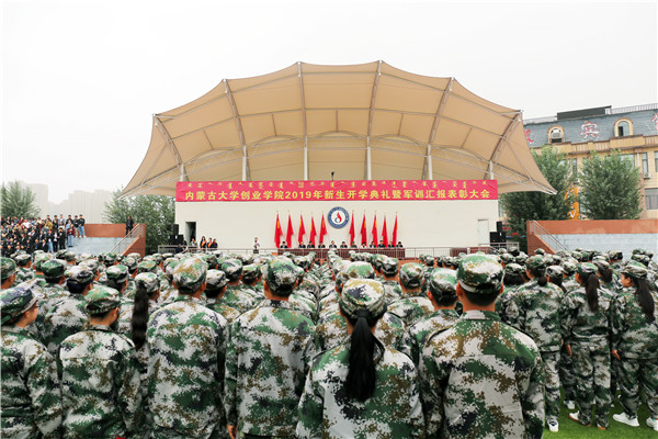军训汇报表彰大会结束后举行了新生开学典礼。