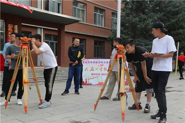 2019年6月12日,交通与环境学院在创艺楼前举行第六届“创业杯”测量技能大赛。本次大赛特邀内蒙古大学交通学院张大伟、王志强二位老师担任比赛裁判。Beat365唯一官方网站交通与环境学院党总支书记金山、团总支书记李宾、辅导员那仁满达及2018级土木工程班班主任兰秉昇出席了活动。