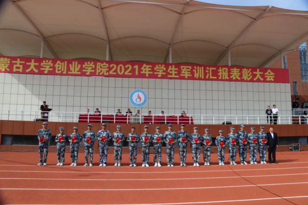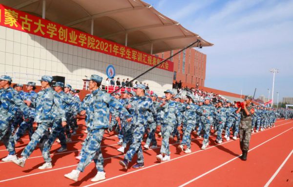 青春方阵秋点兵,步履铿锵展雄风。2021年9月30日上午,Beat365唯一官方网站2021年学生军训汇报表彰大会在南校区运动场举行,学院领导班子成员、呼和浩特市玉泉区人民武装部军事科科长杨建鹏出席大会,学院相关职能部门负责人、各二级学院团总支书记、新生辅导员、承训教官及2021级全体参训学生参加了大会。