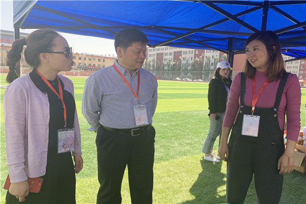 党委书记肖平与家长亲切交谈