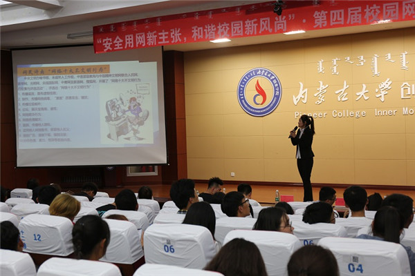 接下来教务部网络与实验管理中心校园网络管理委员会成员带着精心准备的PPT讲义从四个方面就大学生校园网络安全知识进行。第一方面,分析了互联网的发展现状,互联网继续向高龄和低龄渗透。并对《网络安全法》等法律法规和相应的违法处理方式进行介绍,告诫大家互联网不是法外之地,红线不能踩,规矩不能越;第二方面,提醒同学们要慎重网络交易,保障财产安全;第三方面,提示同学们网络交友需要多加防范,对待网络信息要善辩真伪,明辨是非;第四方面,用鲜活的视频案例和触目惊心的数据说明“校园贷”近几年给大学生带来的严重危害,告知同学们应树立正确的理性消费观,切忌攀比和盲目消费,远离“校园贷”。