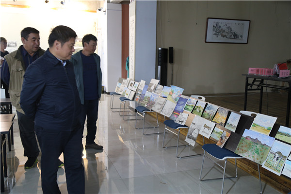 肖书记一行来到红格尔、正蓝旗写生基地,实地察看写生情况,慰问写生师生的学习与生活,并与同学们亲切地进行交流,认真观看了学生的绘画作业,对作业的质量给予了高度评价和充分的肯定,并鼓励大家要认真学习,不断提高专业技能,争取出些精品力作。同时,对师生们的食宿条件进行了了解,希望同学们圆满完成写生课程,注意身体,平安返校。表示在外出写生期间服从学院和老师的管理安排,一定按照教学计划完成写生任务。