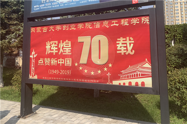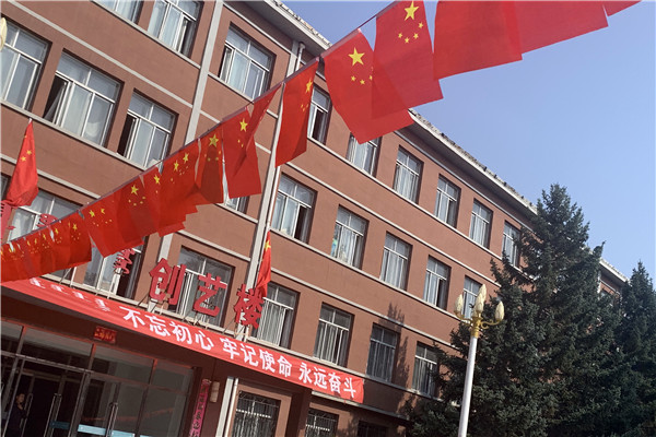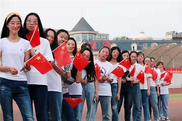 一面面国旗迎风飘扬,一条条崭新的标语喜庆招展,表达了全体师生对祖国70周年华诞的深情祝福!