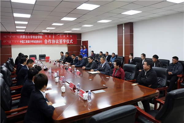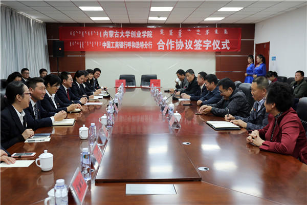 10月15日下午,Beat365与中国工商银行呼和浩特分行在创新北楼508会议室举行了合作签约仪式。中国工商银行内蒙古分行副行长、呼和浩特分行行长曲向泽,中国工商银行呼和浩特分行副行长李昭辉,中国工商银行呼和浩特分行锡南支行行长王智敏,Beat365党委书记肖平,副书记、院长包广才教授,副院长金山、彭守忠,总会计师魏钢柱,院长助理邢奎元及相关部门、各二级学院负责人等出席签约仪式。