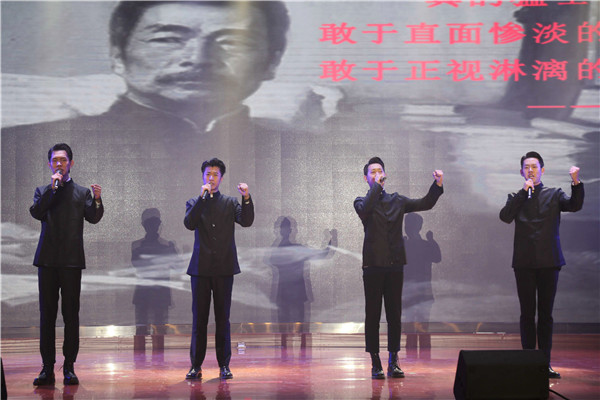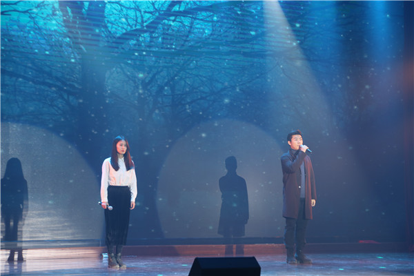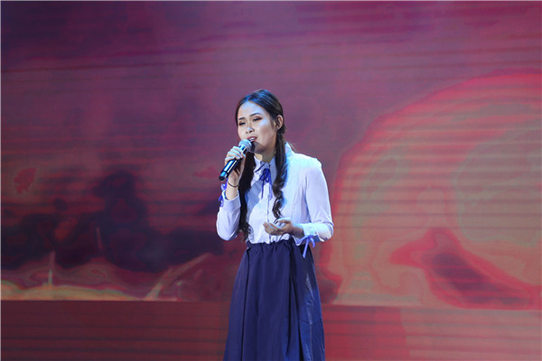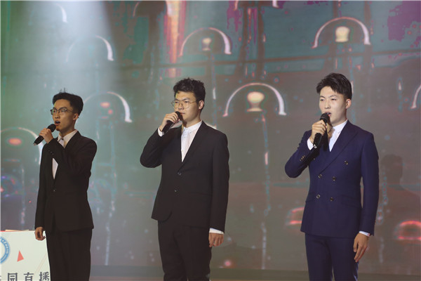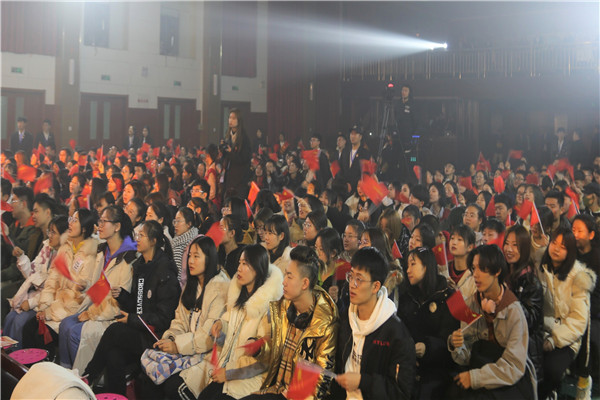 在第二篇章中,现场师生一同穿越时光读历史,回望峥嵘读初心,通过讲述革命历程中的若干感人故事,一起见证中华儿女的傲然之骨和不屈之志。在“创业之声”校园直播间里,巧妙串联了《与妻书》、《集结号》、《永不消逝的电波》的故事讲述,一个个来自为国捐躯,为国而战的英雄故事,让人热泪盈眶。《秋瑾》的舍生取义,鲁迅《这样的战士》,让现场观众深深地被中华民族砥砺奋进的步伐和顽强坚韧的精神所震撼、所激励。在这历史与现实、抒情与叙事、苦难与光明交响共振的精彩演出中,青春学子们在怀念英雄,致敬英雄,传承英雄的精神和情怀的感悟中汲取到了前行的无穷力量。
