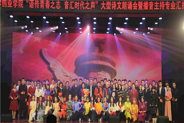 语言是有声的思想,声音能凝聚无限的力量。这场演出是高校学子用声音创作的一首激情澎湃的诗篇,是校园文化用舞台呈现的一次春风化雨的课堂,是中华儿女用青春诵读的一份不忘初心的宣言,是创院青年用专业汇报的一曲气势磅礴的交响。