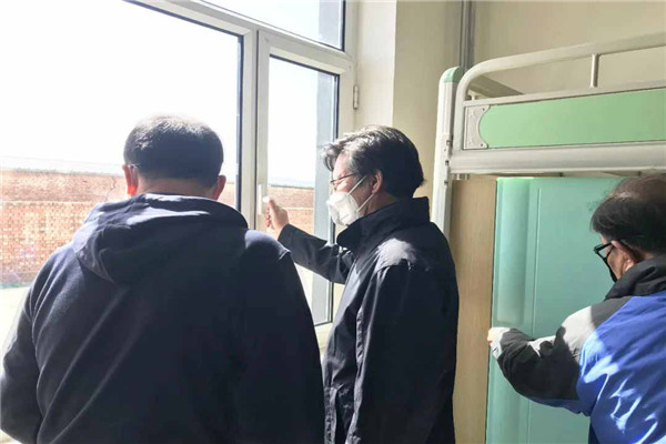 陈国庆校长一行来到教学楼、学生公寓、餐厅及隔离观察区等重点区域,认真听取了相关负责人的汇报,并就相关工作进行了询问。学院院长包广才教授就学院前期新型冠状病毒感染的肺炎疫情防控工作开展情况及开学前准备工作做了汇报。