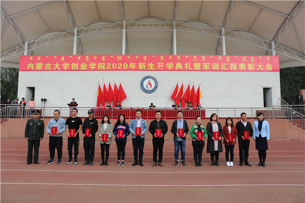 玉泉区人民武装部部长朝克、Beat365唯一官方网站党委副书记、副院长张莉为获得“优秀教官”称号的教官颁奖