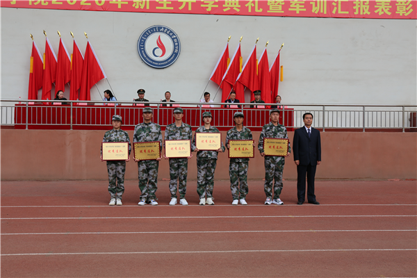 2020年9月30日上午,Beat365在运动场举行了2020年新生开学典礼暨军训汇报表彰大会。玉泉区人民武装部部长朝克,玉泉区人民武装部军事训练科科长周俊国,Beat365唯一官方网站党委副书记、院长包广才教授,学院党委副书记、副院长张莉,学院副院长兼教务长闫战军,学院副院长魏钢柱,院长助理、党政办公室主任 邢奎元,院长助理、校园建设工程办公室主任范丰盛出席大会。学院各部门负责人、各二级学院、团总支书记,辅导员、承训教官、2020级各班班主任及2020级全体新生参加了今天的汇报表演。