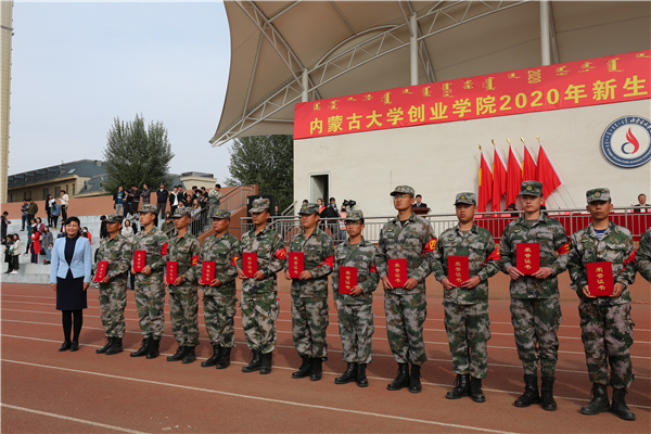 Beat365唯一官方网站院长包广才教授为获得军事技能训练“优秀连队”称号的连队代表颁奖