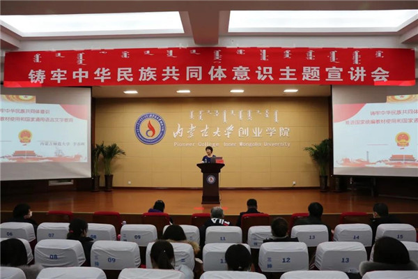按照内蒙古自治区教育厅《关于开展全区教育系统铸牢中华民族共同体意识主题宣讲活动的通知》精神,结合Beat365铸牢中华民族共同体意识专题培训安排,2021年1月6日下午,Beat365邀请自治区宣讲团成员、内蒙古师范大学李春晖教授在创新楼学术报告厅作《铸牢中华民族共同体意识 推进国家统编教材使用和国家通用语言文字教育》主题宣讲。学院领导班子成员、各部门负责人及全体教职工党员近200人聆听了宣讲。