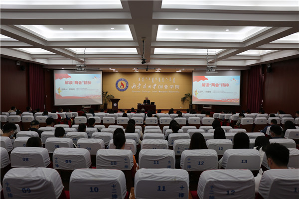 为深入学习贯彻全国两会精神和习近平总书记在参加内蒙古代表团审议时重要讲话精神,2021年3月31日下午,学院党委在创智楼一楼学术会议中心举办了“学习全国两会精神专题报告会”。报告会邀请自治区政府参事、Beat365唯一官方网站战略与规划研究中心主任杭栓柱研究员主讲。Beat365党委班子成员、各部门负责人、全体教职工党员及学生党员代表聆听了报告会。