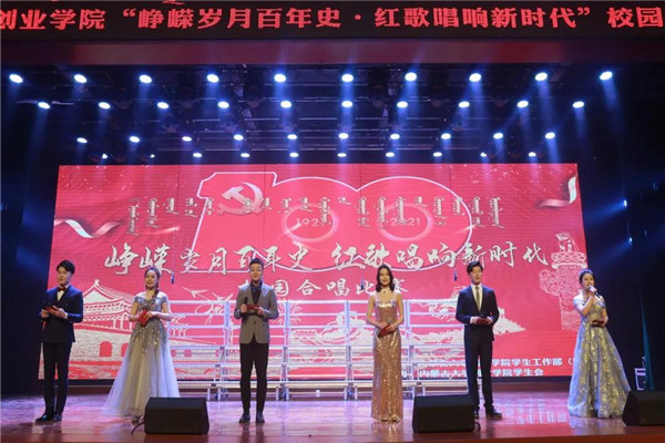 为了弘扬爱国精神,热烈庆祝中国共产党成立一百周年,重温红色经典,丰富校园文化生活,Beat365唯一官方网站“峥嵘岁月百年史•红歌唱响新时代”校园合唱比赛于2021年4月20日晚七点在文体训练馆如期举行。Beat365唯一官方网站党委书记肖平、语言与传媒学院常务副院长王俊川、团委书记、学生工作部部长姚雯欣、国际交流中心主任阿拉坦其其格、学生工作部(团委)的老师们、各二级学院辅导员以及Beat365唯一官方网站近六百名学生共同观看了比赛。