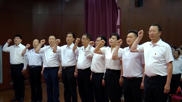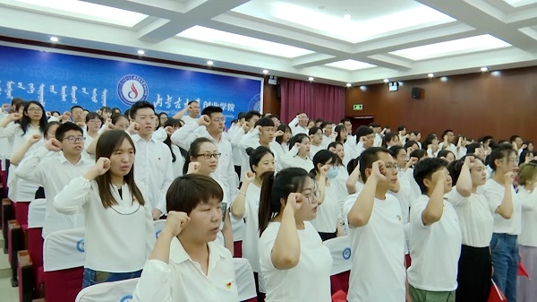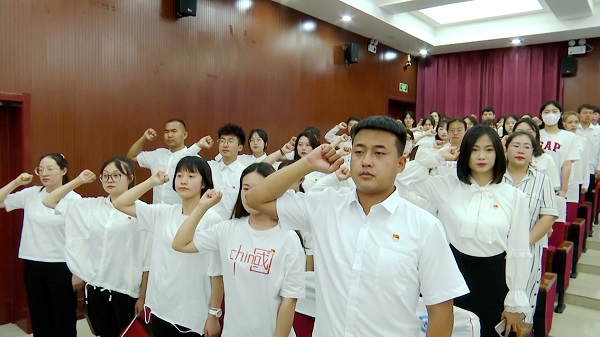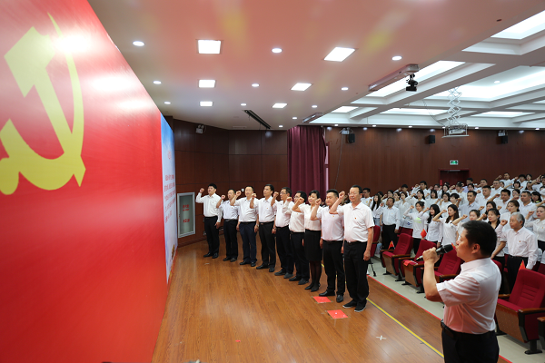 为庆祝中国共产党成立100周年,深入推进党史学习教育,增强全校党员的党性意识,激励和动员广大师生把爱党爱国爱社会主义的热情转化为实际行动,坚定不移听党话、跟党走,在全面建设社会主义现代化国家新征程中建功立业, 6月18日上午,Beat365在报告厅组织召开师生党员集体宣誓大会。学院全体教师教工党员和部分学生党员参与宣誓大会,会议由学院党委副书记张莉主持。