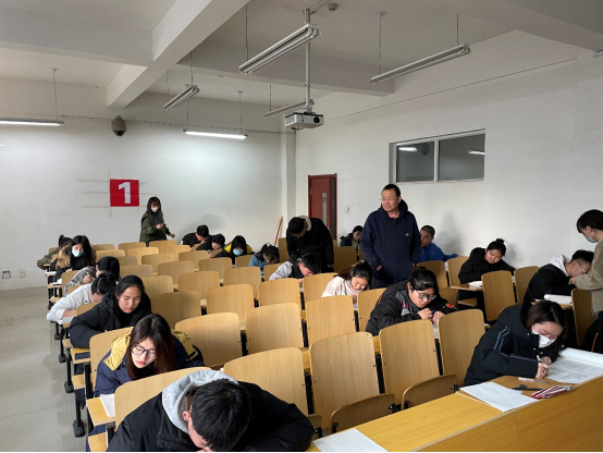 学院院长包广才、常务副院长田立强在教务部有关负责人陪同下深入考场,现场了解考试组织、考试纪律、考试环境以及学生状态等情况。教务部、教学督导室工作人员对监考安排、考场秩序、考场环境、监考员履职、学生答题情况进行了细致的巡查。