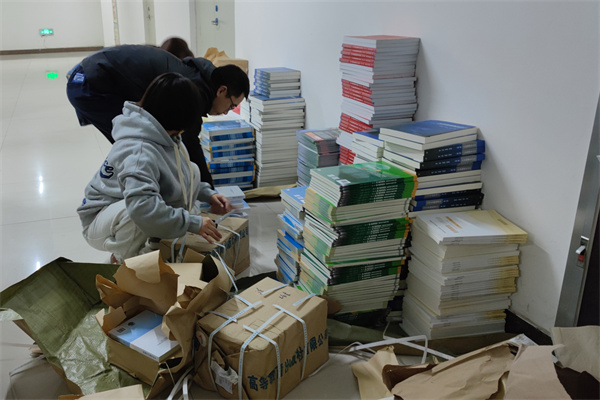 “虽然工作量大,但这就是我们作为老师的初心与使命。”为保证教材能够准确地到达每一位学生的手中,各二级学院的老师们加班加点,认真整理学生教材信息并汇总每一位学生的邮寄信息。