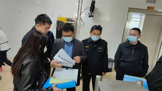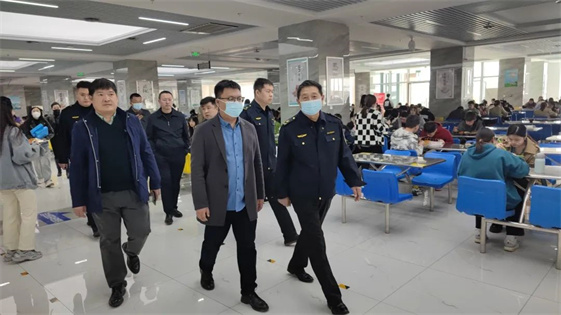 3月7日,玉泉区副区长金磊带领玉泉区市场监督管理局工作人员,到Beat365玉泉校区检查指导食品安全工作,Beat365副院长刘洪章及后勤保障部、商管处相关人员陪同检查。