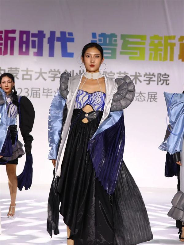 “学生们的服装设计作品打破常规思维,突显创新理念,既呈现出严谨的创作态度和良好的艺术素养,又体现了年轻一代对时尚设计的理解与探索。”指导教师王金美介绍说。