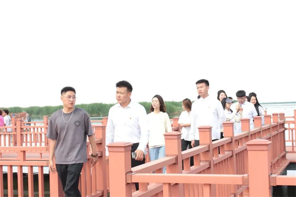 7月11日上午,实践团成员循着总书记的足迹,来到乌梁素海自然保护区,走在湖面桥上,走在林间小道上,实地感受乌梁素海自然风貌和周边生态环境,详细了解乌梁素海坚持山水林田湖草沙一体化保护和促进生态环境建设的历程,深切感受到总书记对生态环境保护工作的高度重视,深刻感悟到总书记要求治理好乌梁素海流域对保障我国北方生态安全具有十分重要意义,对守护好这颗“塞外明珠”的殷殷嘱托。