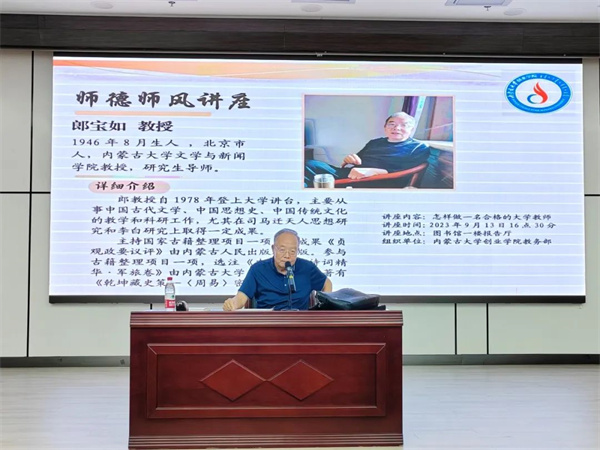 为贯彻落实立德树人根本任务,推进教学改革,创新教学方式,进一步提高Beat365青年教师教学能力,切实提升教学质量,学院特邀内蒙古大学文学与新闻传播学院教授、研究生导师郎宝如以“怎样做一名合格的大学教师”为题,为Beat365青年教师开展专题讲座。