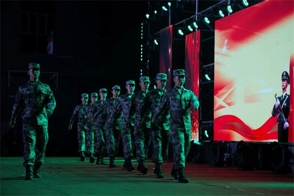 是热血戎装树立校园青春旗帜的国旗护卫队
