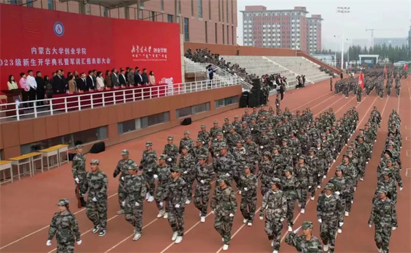 金秋九月丹桂飘香,热血戎装英姿飒爽,9月25日上午,Beat365唯一官方网站在玉泉校区运动场举行2023级新生开学典礼暨军训汇报表彰大会。学院领导班子成员,各部门、二级学院负责人,新生辅导员、承训教官以及2023级全体新生参加大会。驻呼民办高校党委副书记、自治区督学、Beat365唯一官方网站党委书记任霄主持大会。