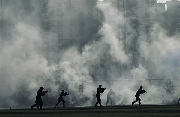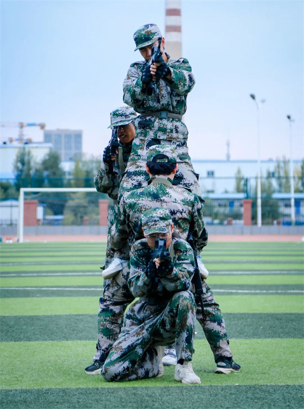 青春热血,书写华章,军训成果汇报表演中,整齐的动作势破云霄,一突一刺彰显英勇雄姿;战术演练干练霸气,冲锋行进、翻滚卧倒、跪姿射击、匍匐前进……一招一式,尽显青春热血风采,赢得现场热烈掌声。