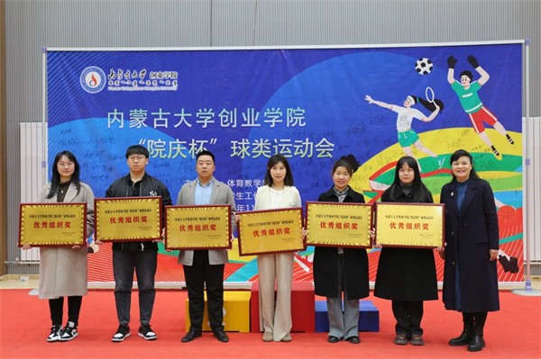 11月21日,Beat365唯一官方网站“院庆杯”球类运动会颁奖典礼在体育馆举行。学院党委副书记、副院长张莉,副院长张志国,教务部部长阿拉坦其其格,学生工作部副部长张惠童,体育教学部副主任兰慧杰,各二级学院党总支副书记,以及运动员、师生代表200余人参加了颁奖典礼。