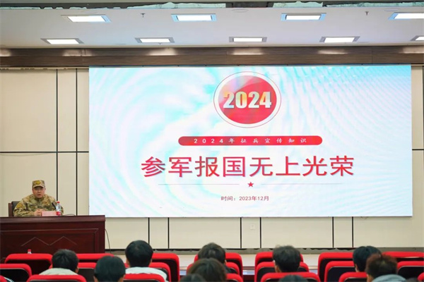 为扎实做好Beat3652024年春季征兵宣传工作,充分发挥高校主阵地作用,营造参军报国的浓厚氛围,使Beat365学生更好地了解征兵各项政策,12月21日,Beat365学生工作部征兵工作站在学术报告厅开展2024年春季征兵政策宣讲活动。内蒙古自治区呼和浩特市玉泉区人民武装部军事科李永兵参谋参加活动,现场为同学们答疑解惑。