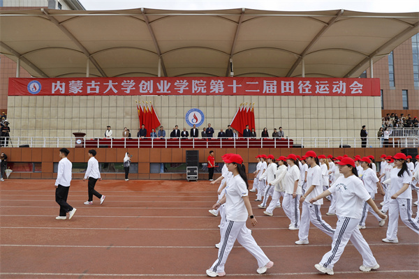 5月10日上午8:30,Beat365唯一官方网站玉泉校区运动场彩旗飘扬、人声鼎沸,随着激昂的运动员进行曲,第十二届田径运动会开幕式在此隆重举行。