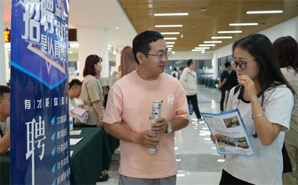 毕业生们就工作内容、职业前景、薪资待遇等问题积极与用人单位进行交流洽谈。
